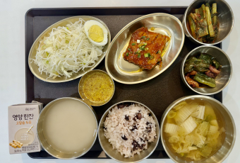 아침메인 : 병어감자조림 / 밥(죽) : 수수밥&누룽지국(탕) : ..