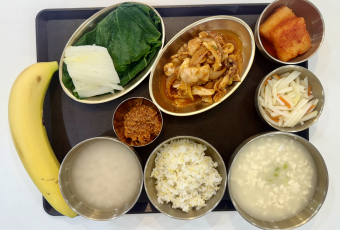 아침메인 : 낙지불고기 / 밥(죽) : 기장밥&누룽지국(탕) : 들..