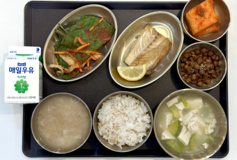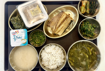 아침메인 : 삼치생강장구이 / 밥(죽) : 보리밥&누룽지국(탕) : ..